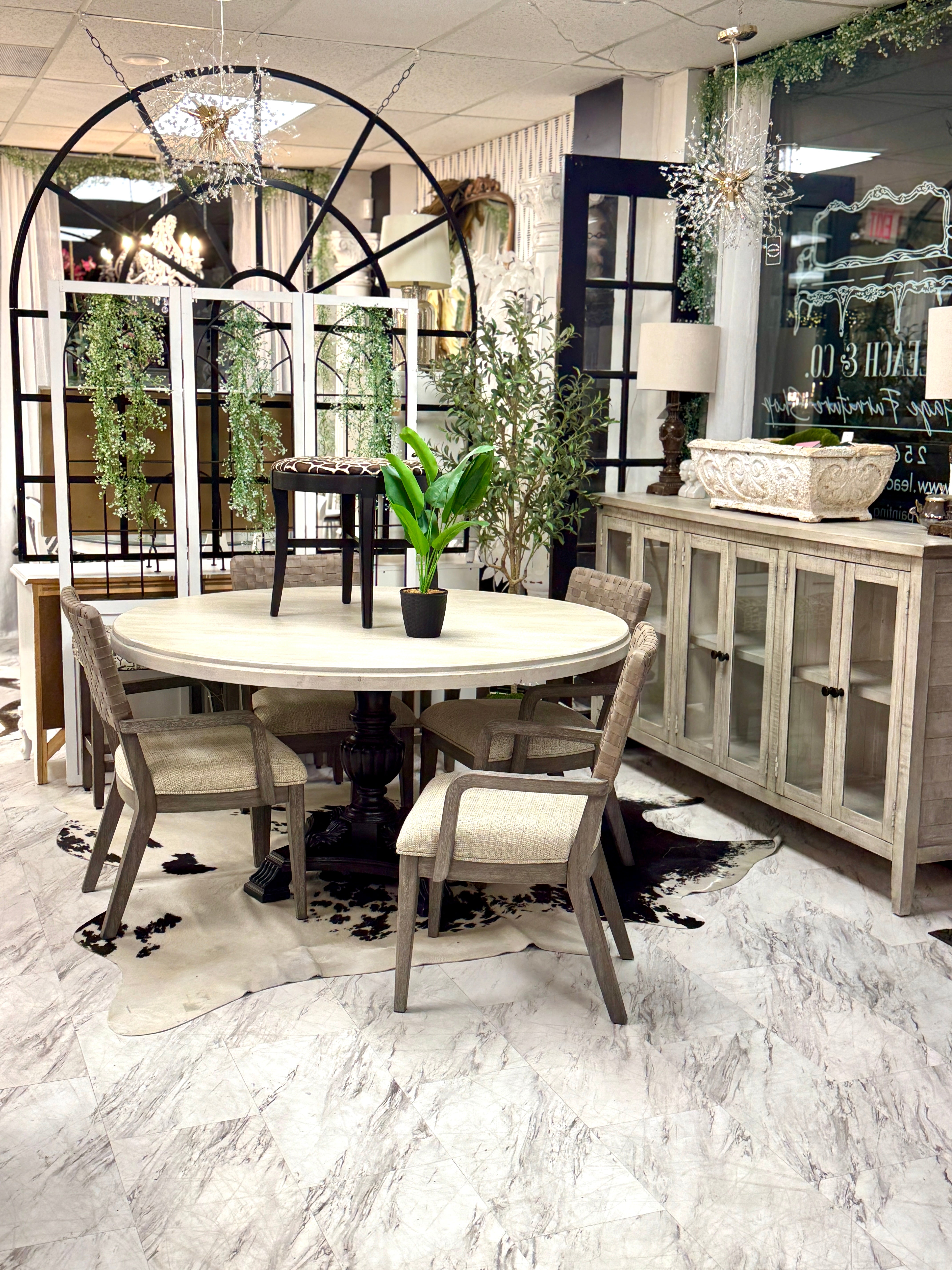 20” round x 18 1/2h. Legs are black. Delivery available.