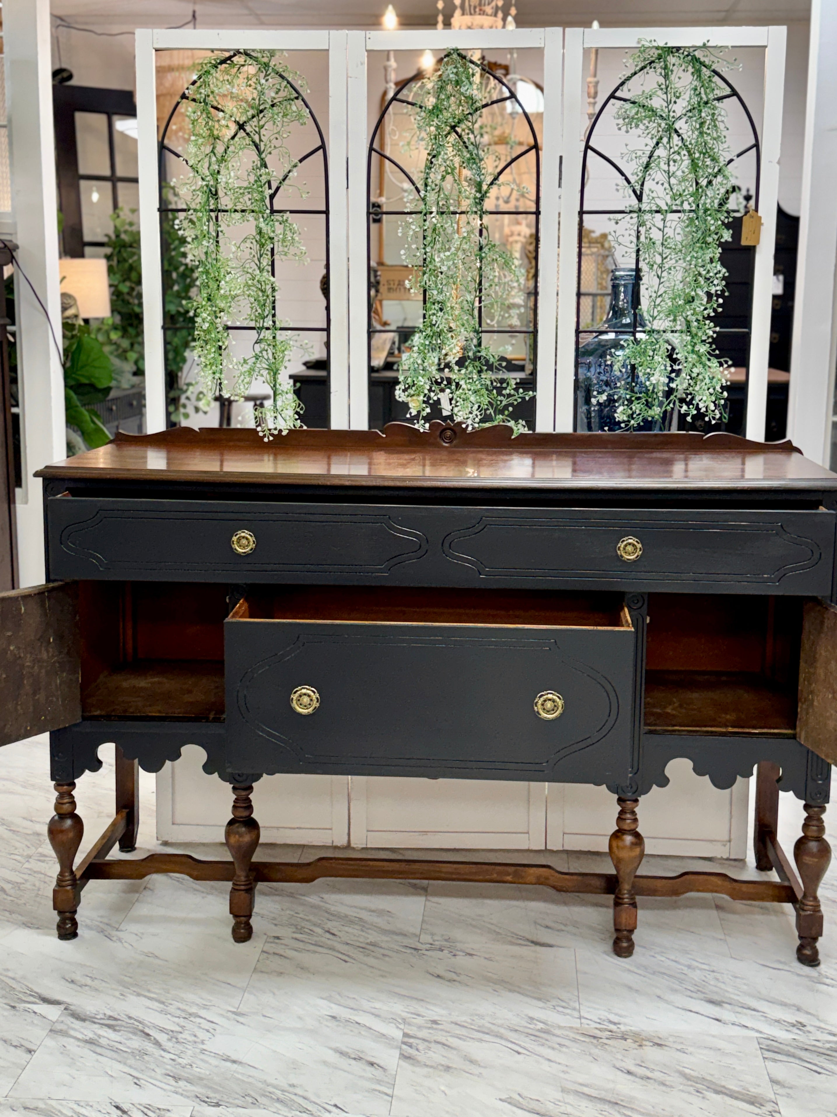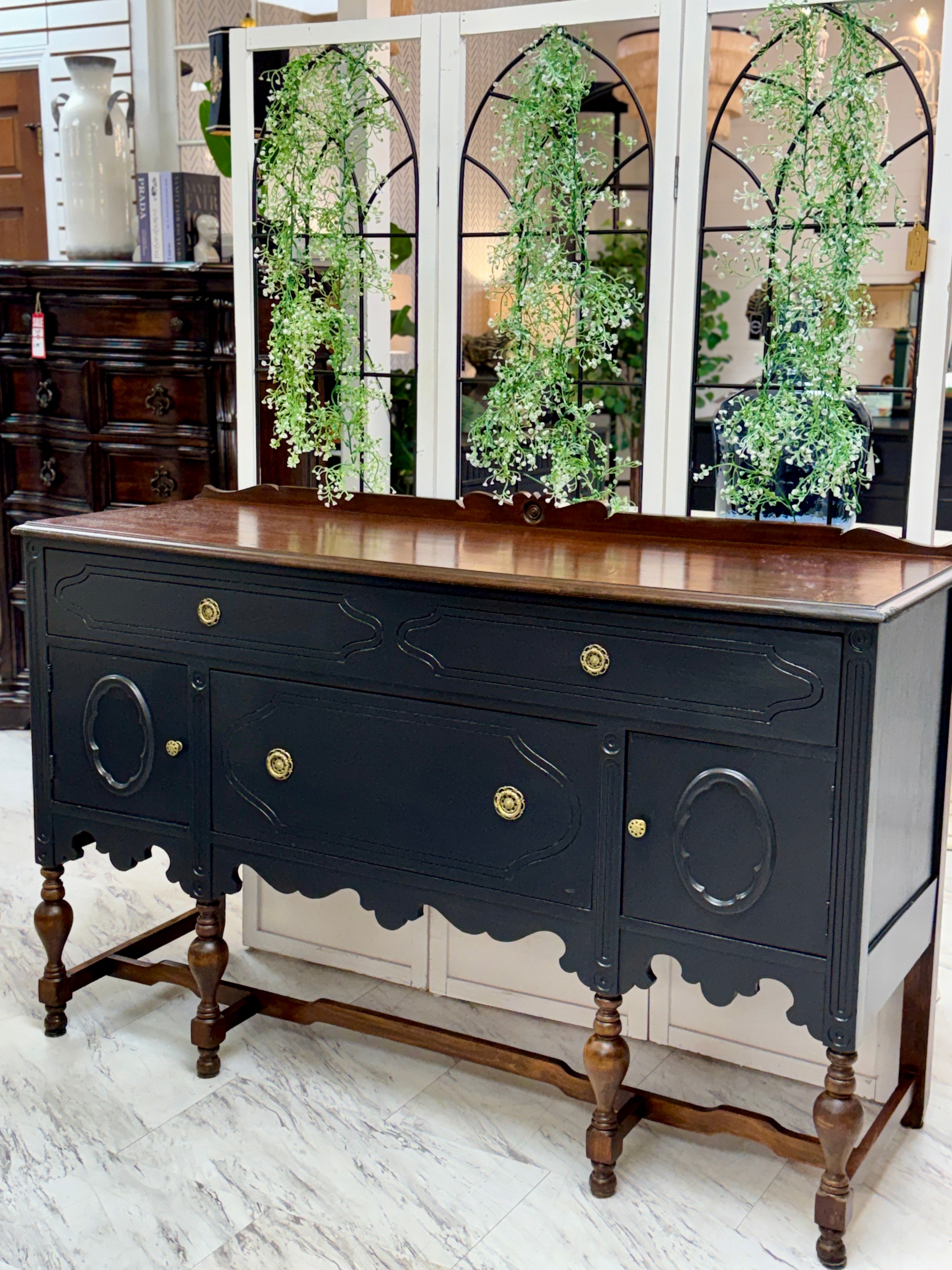 59 3/4w x 20d x 37 1/4h w/trim 39 3/4h. Black. Delivery available.