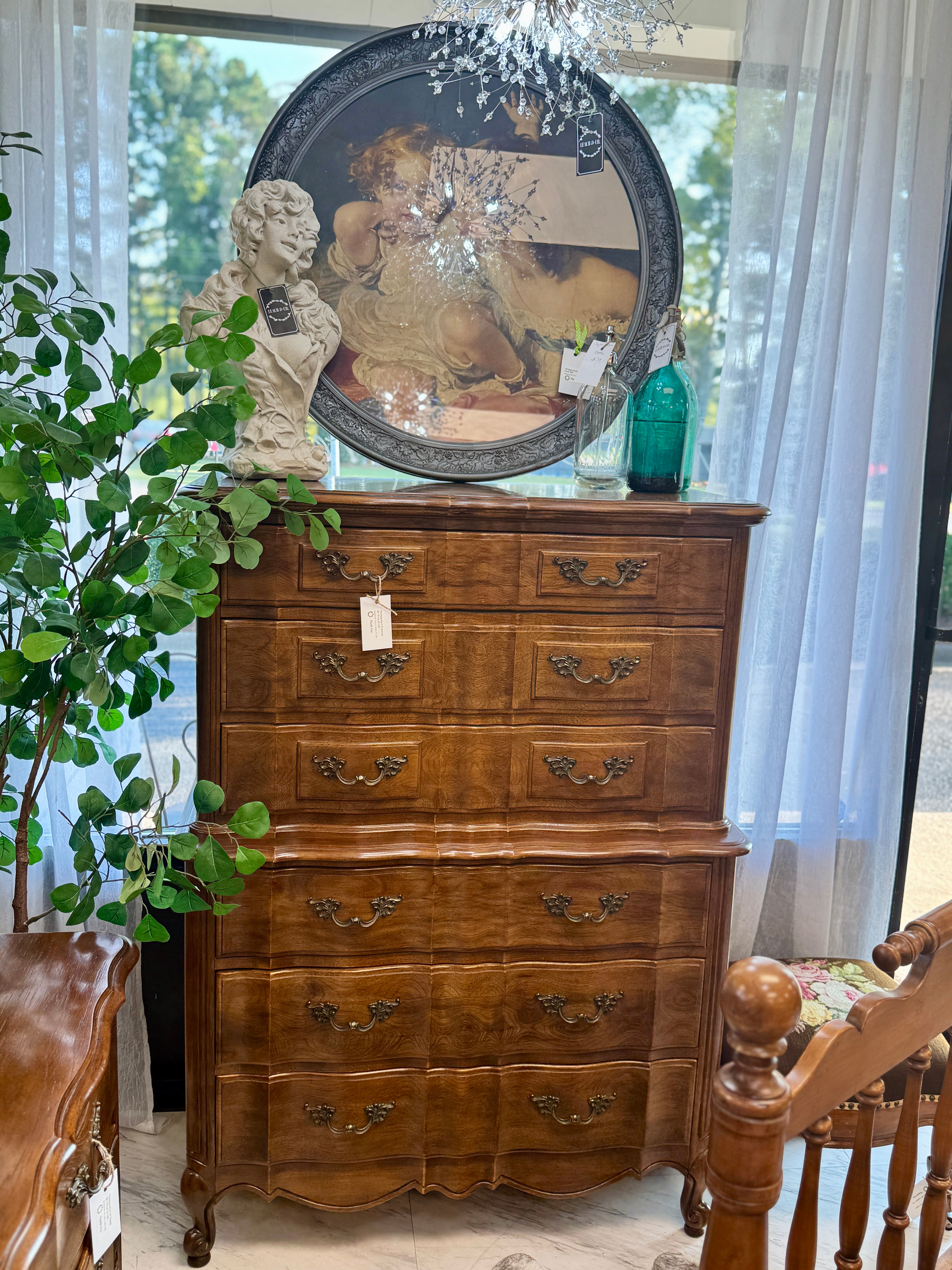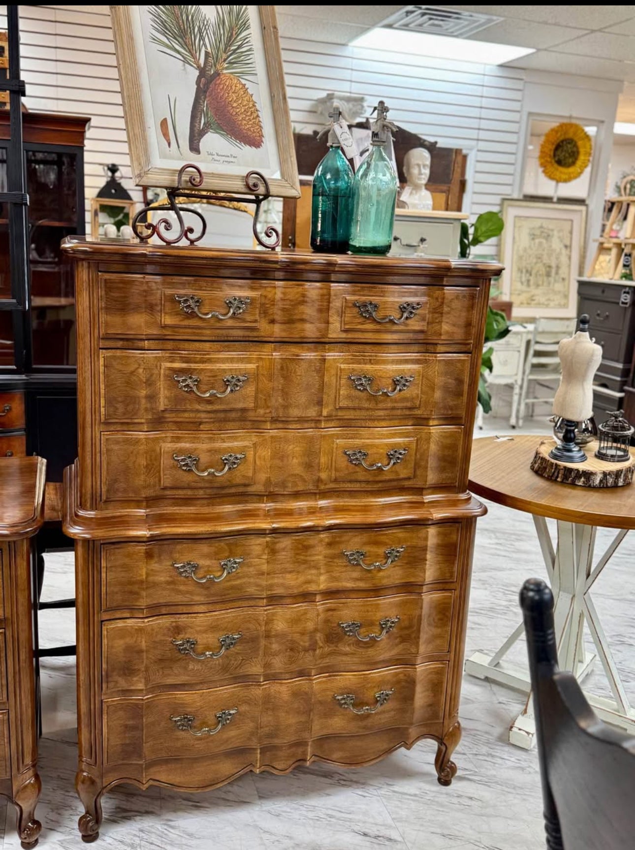 39 1/4w x 18d x 54h. Good condition. Matching dresser and queen headboard sold separately. Delivery available.