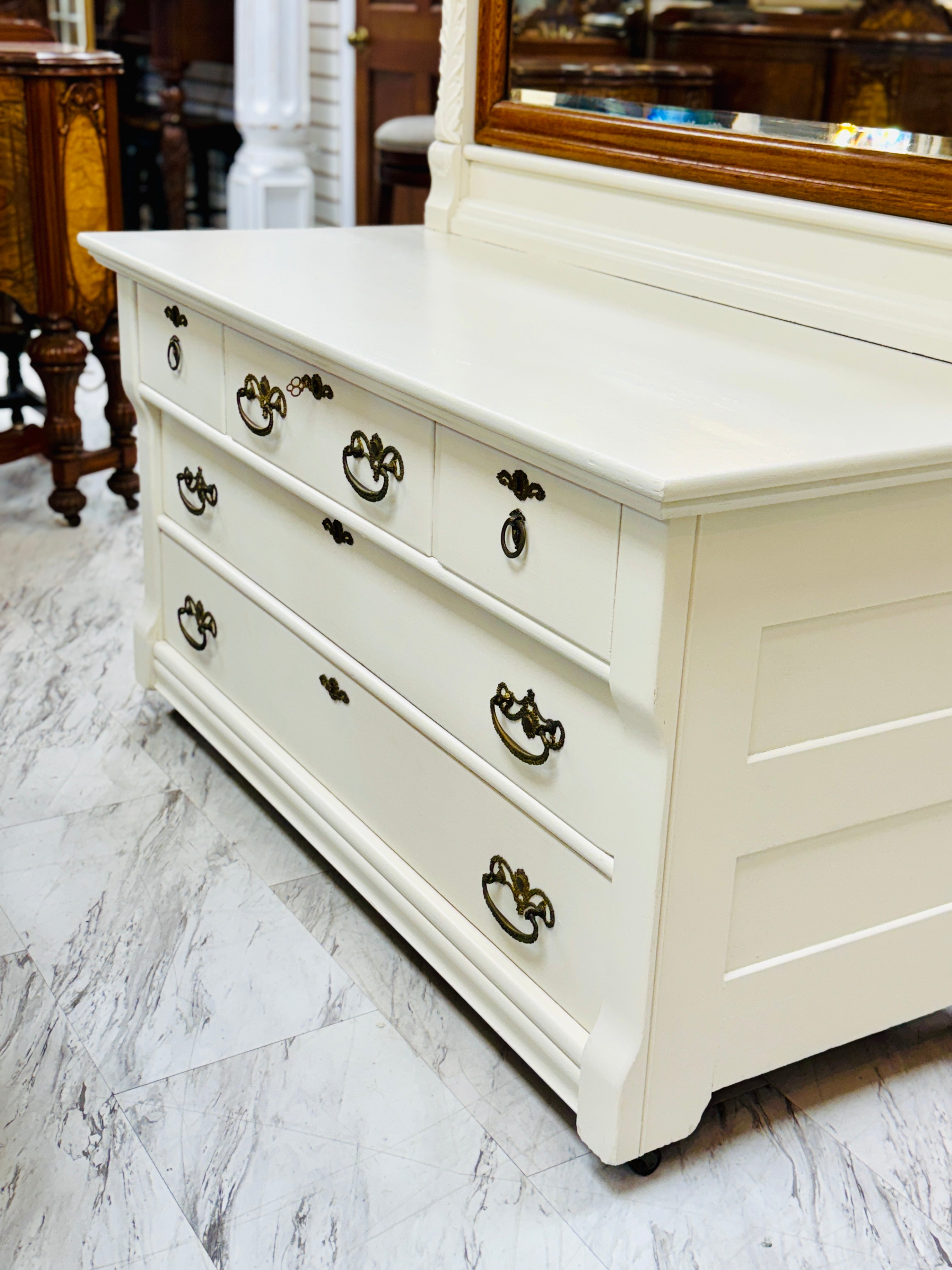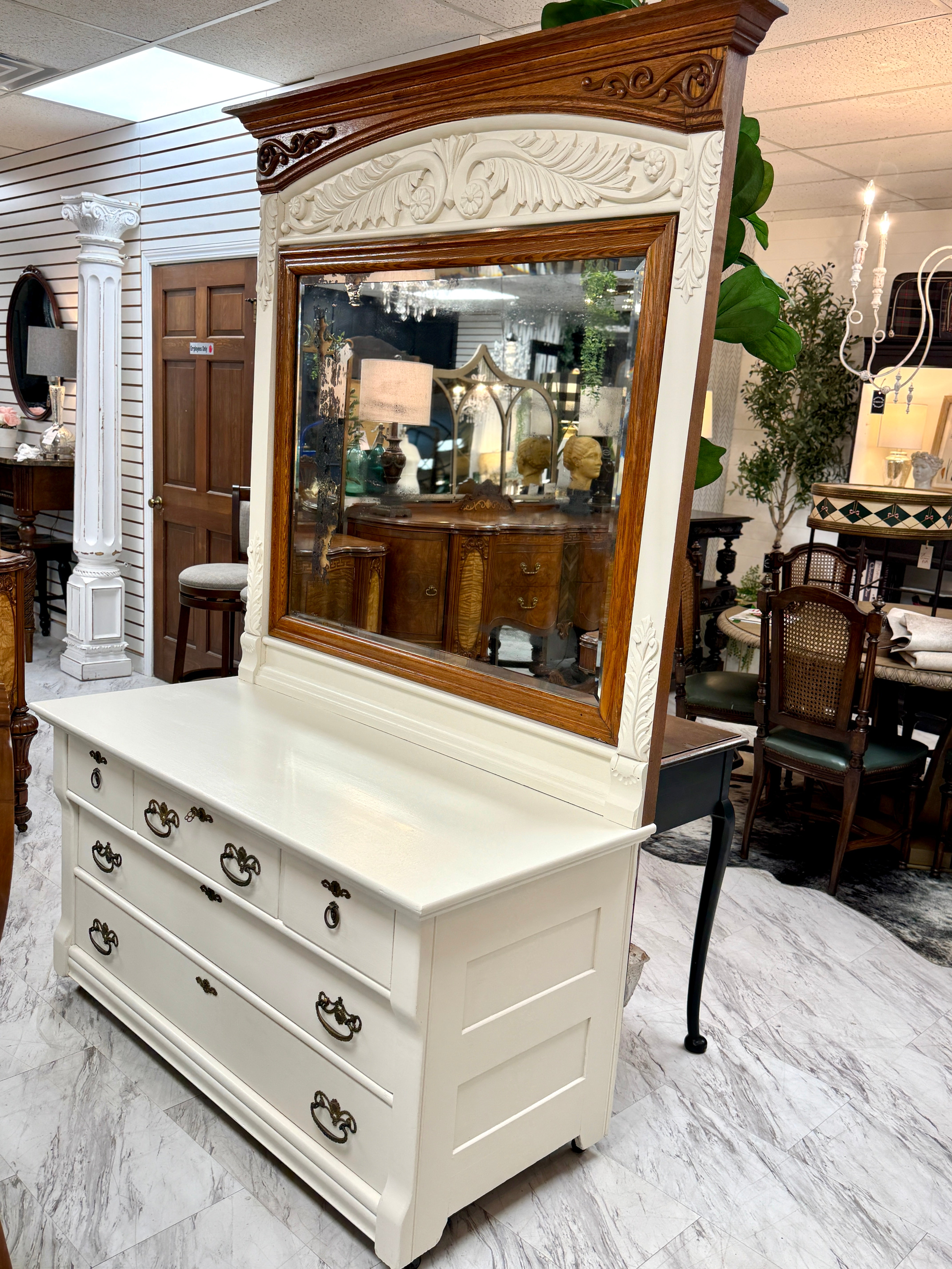 Antique carved wood dresser w/mirror