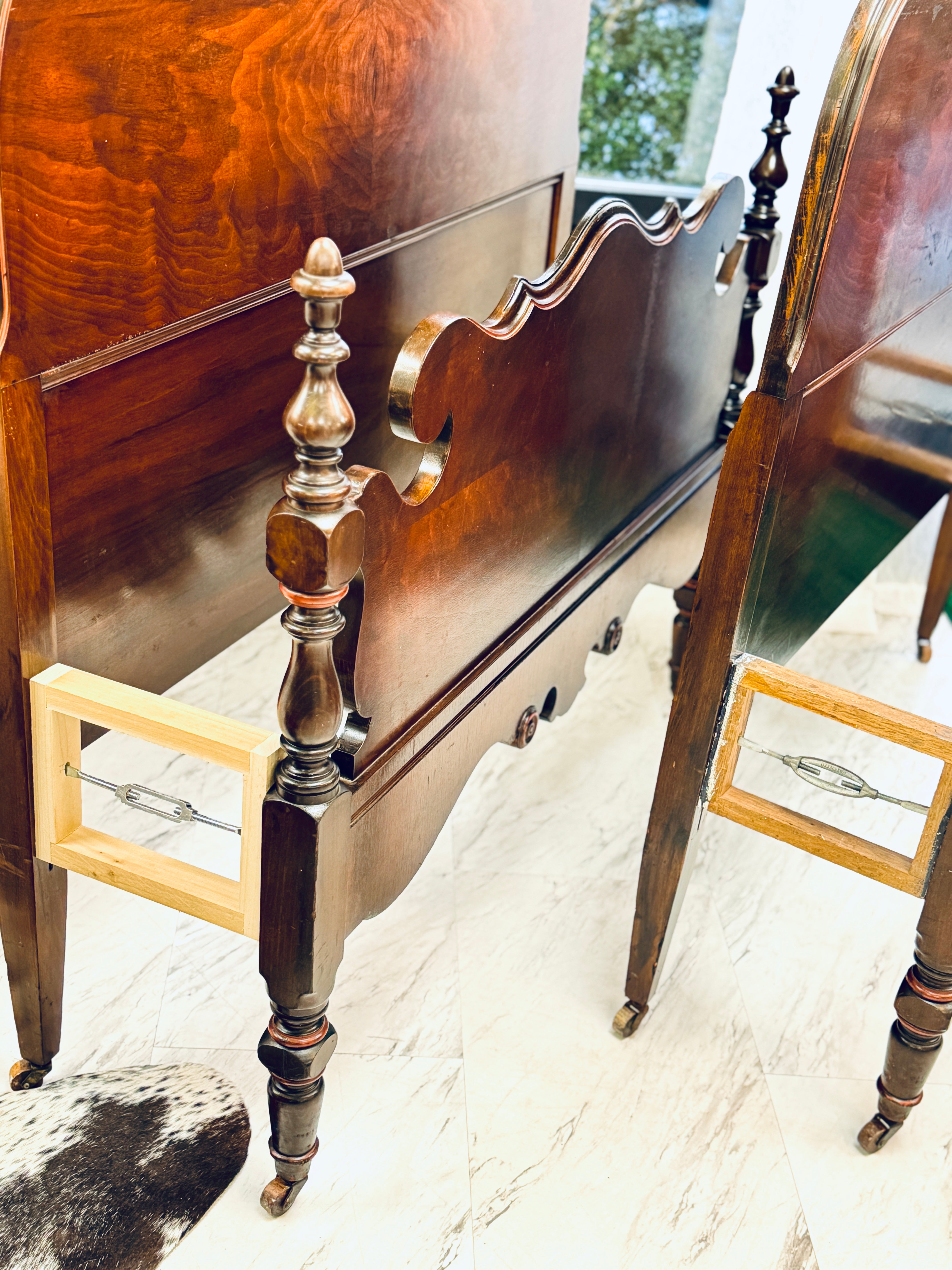 FB: 42” w x 33 3/4” h. Wood rails & slats included. Sold as a pair only. Delivery available.