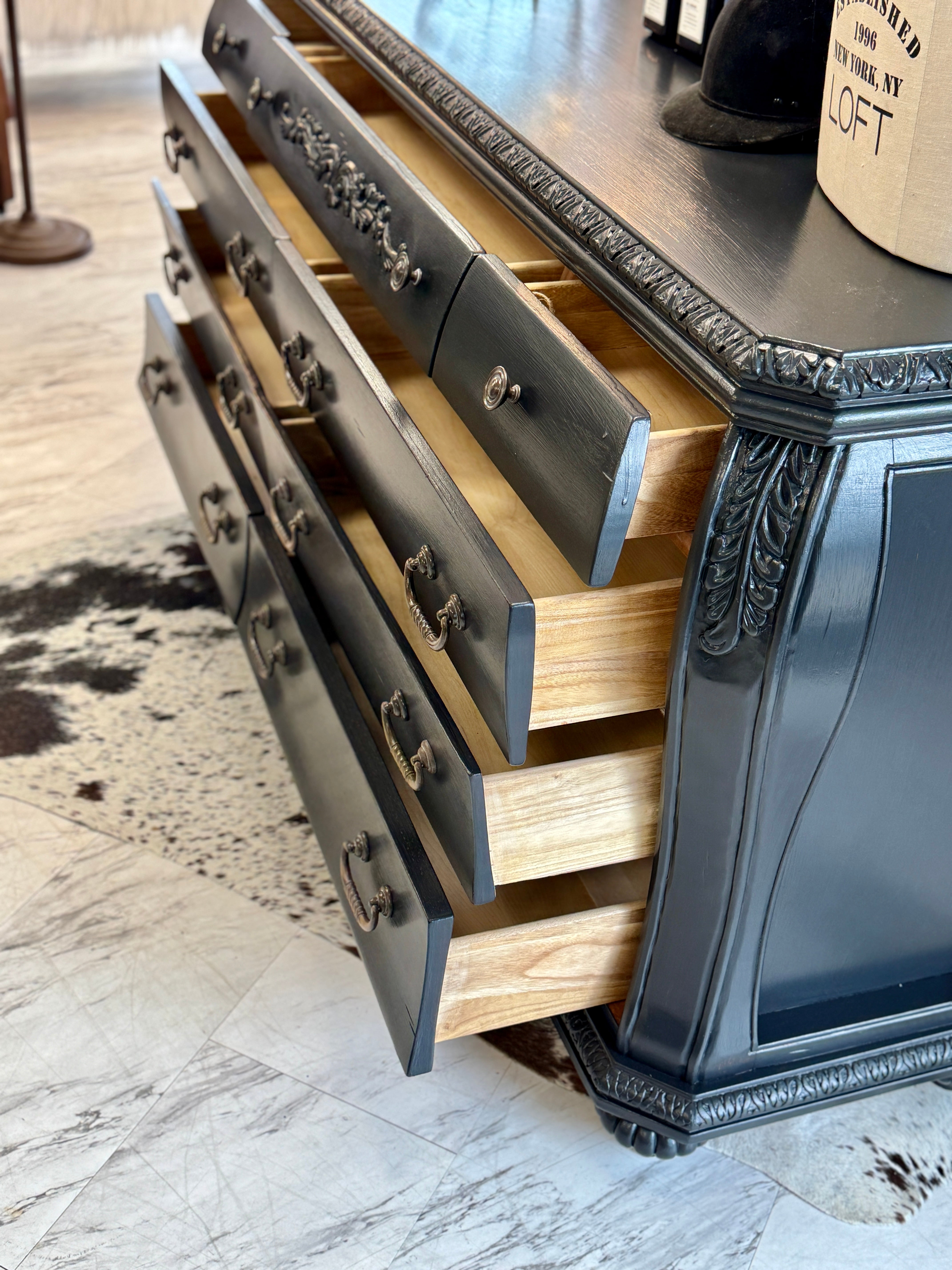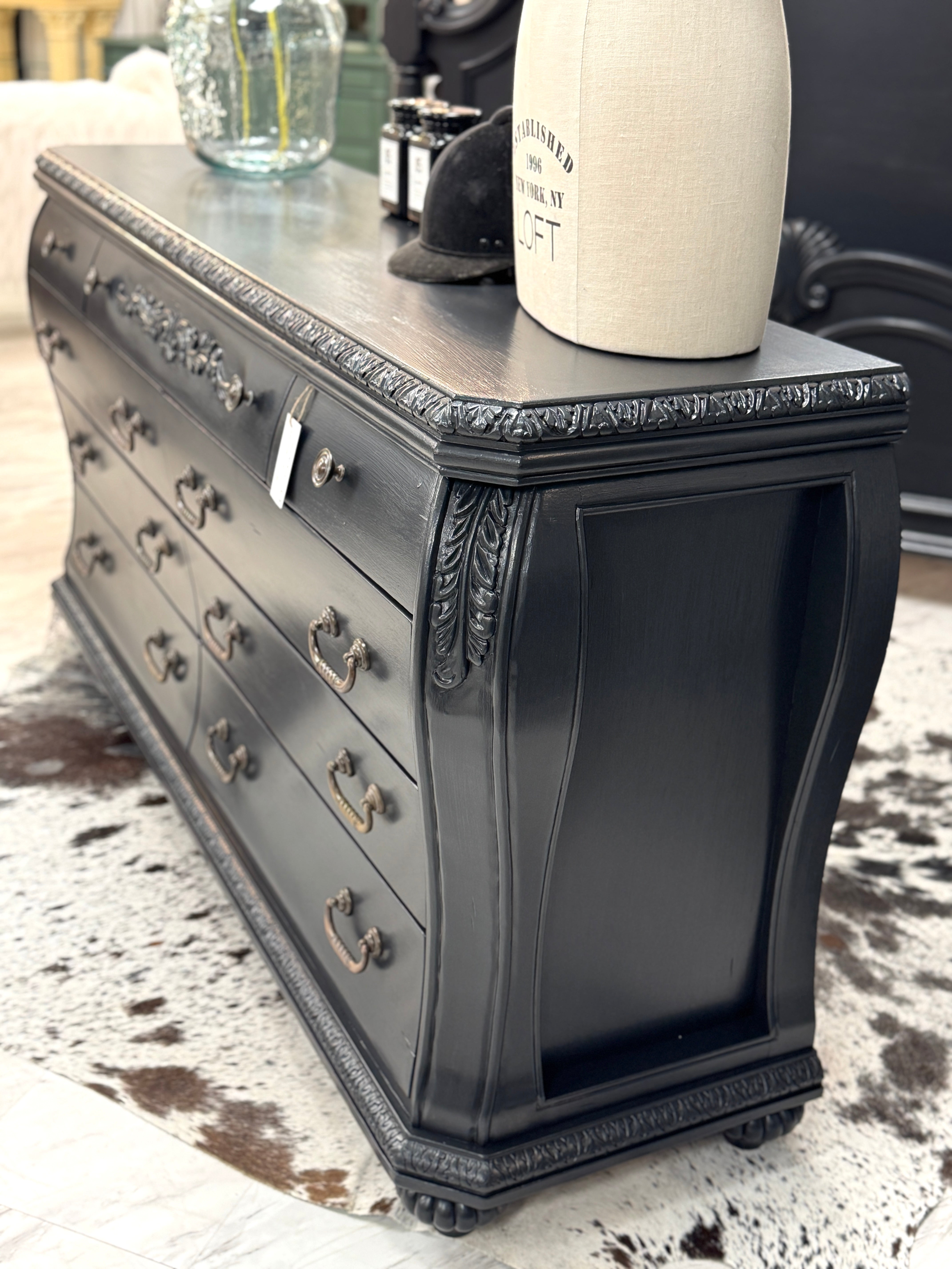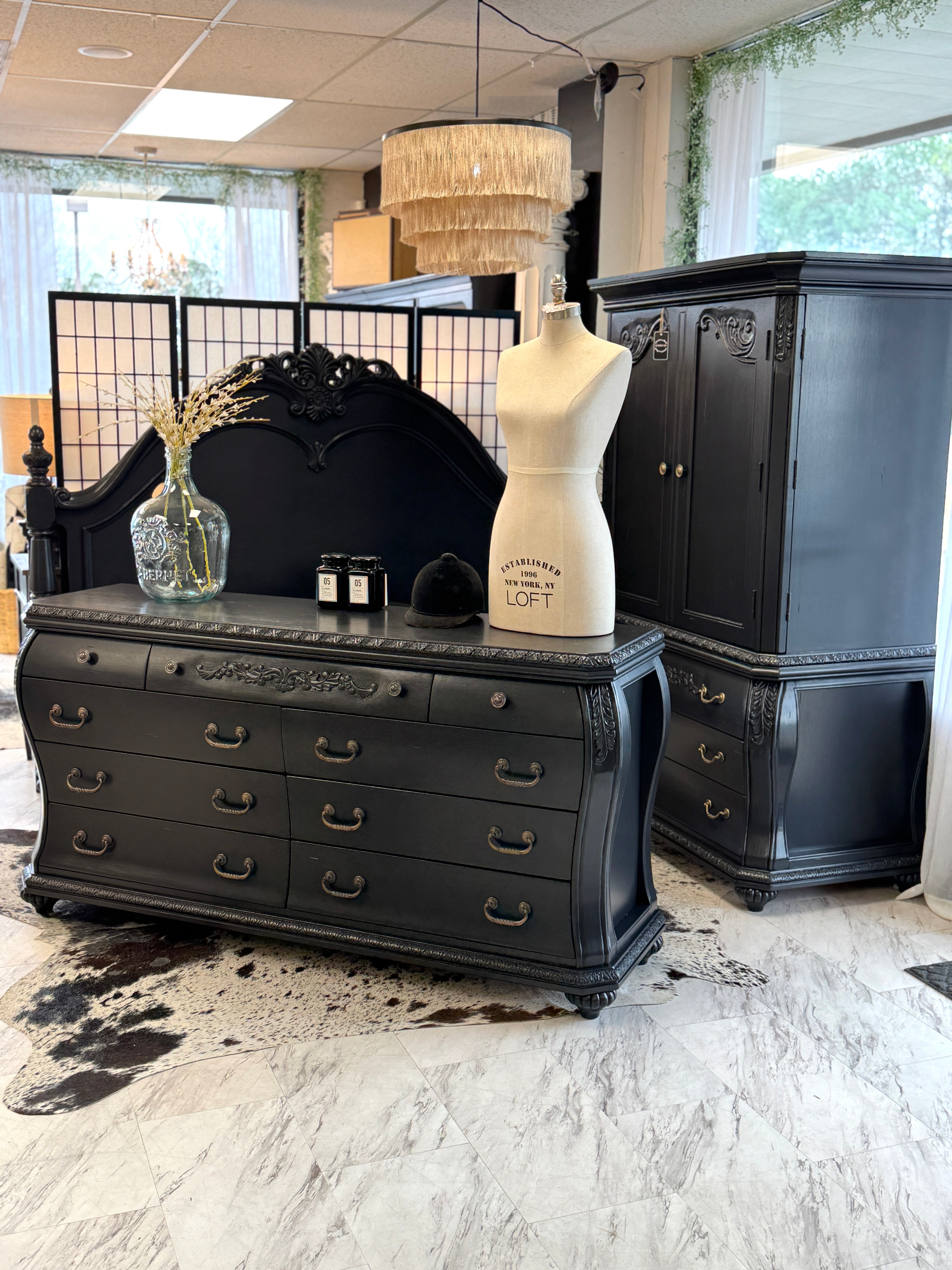 68 w x 20 d x 35 h. Black. Matching pieces available separately. Delivery available.