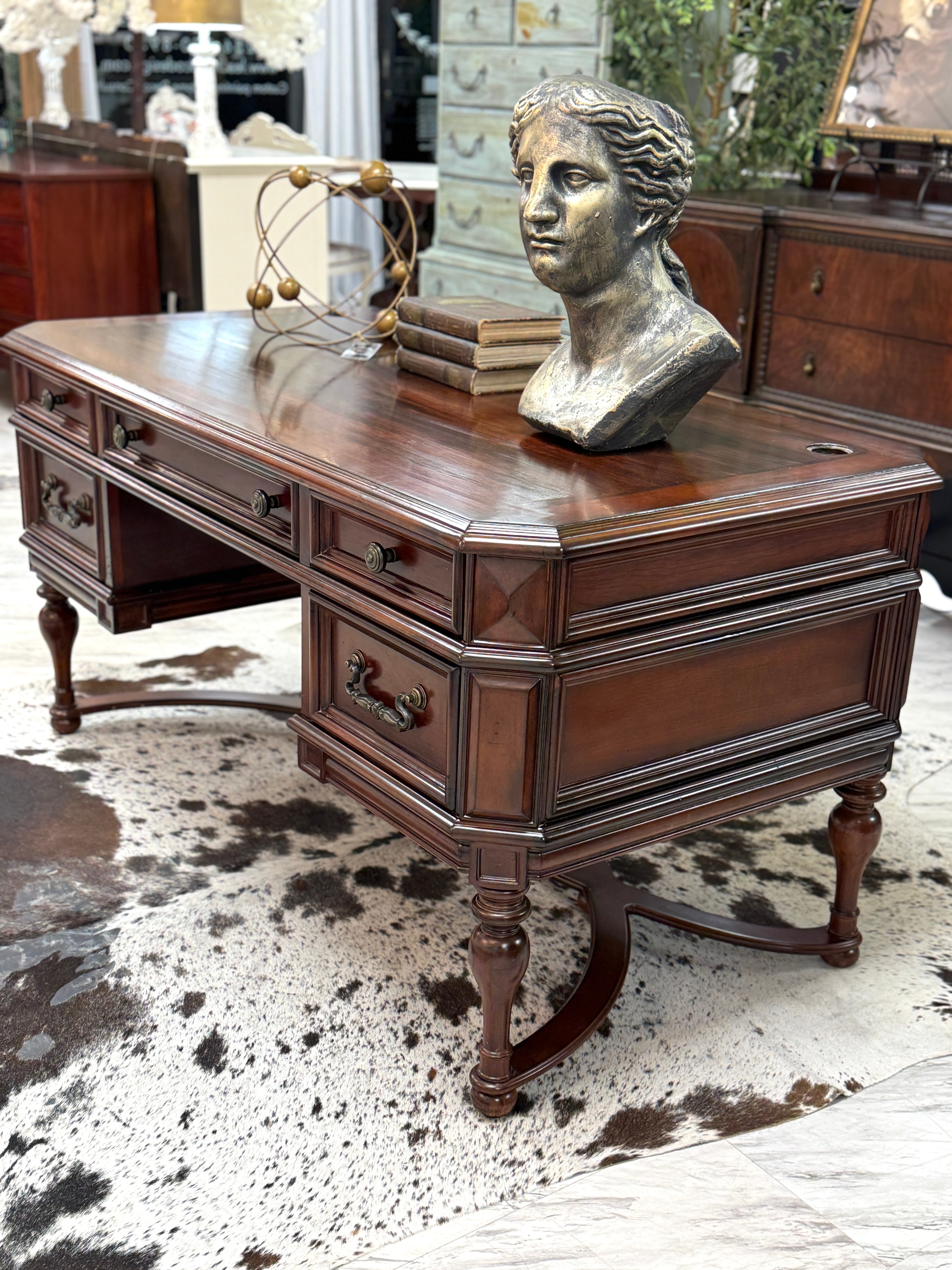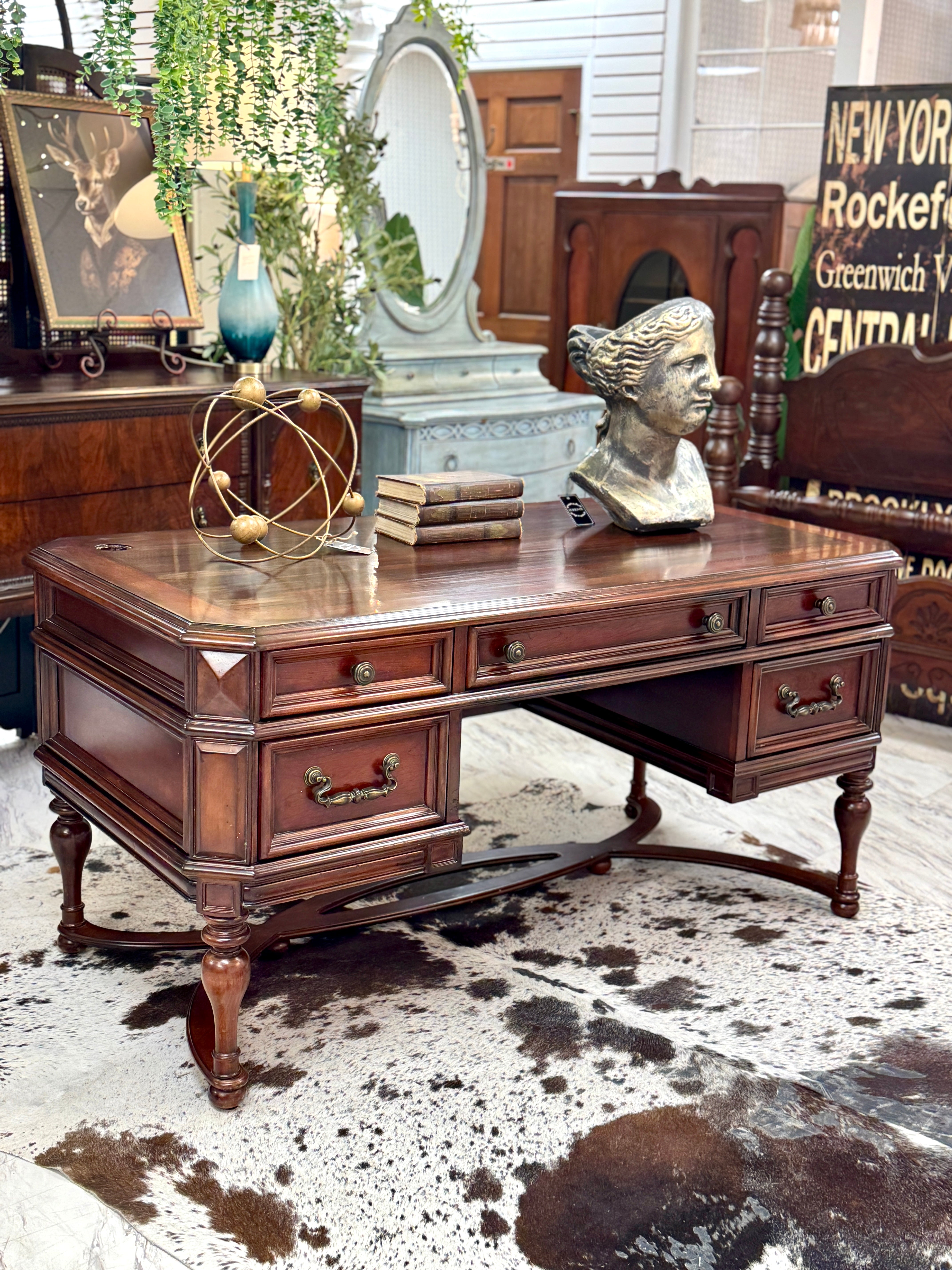 62w x 32d x 31 3/4h. Good condition. Heavy. Delivery available & recommended.