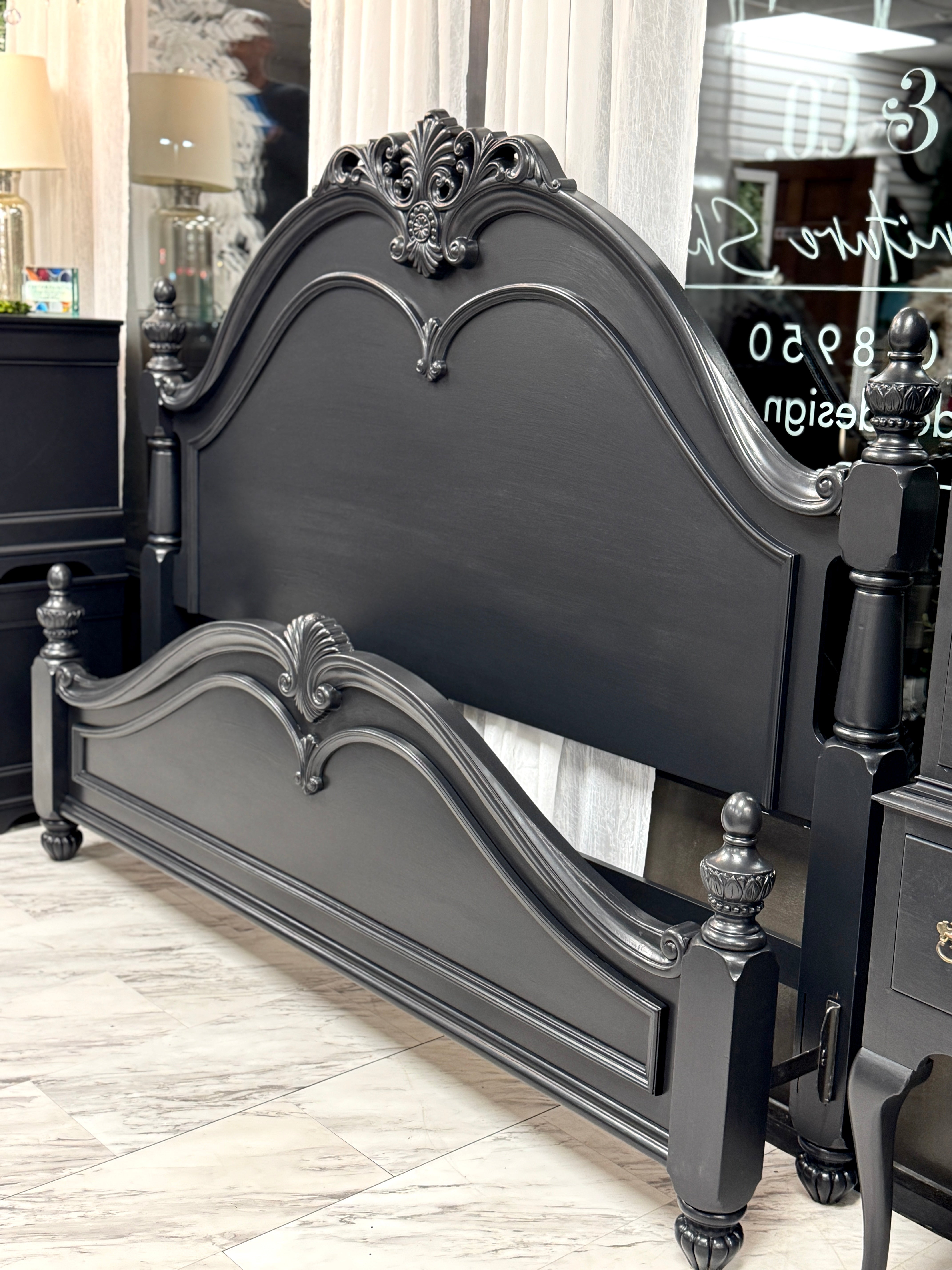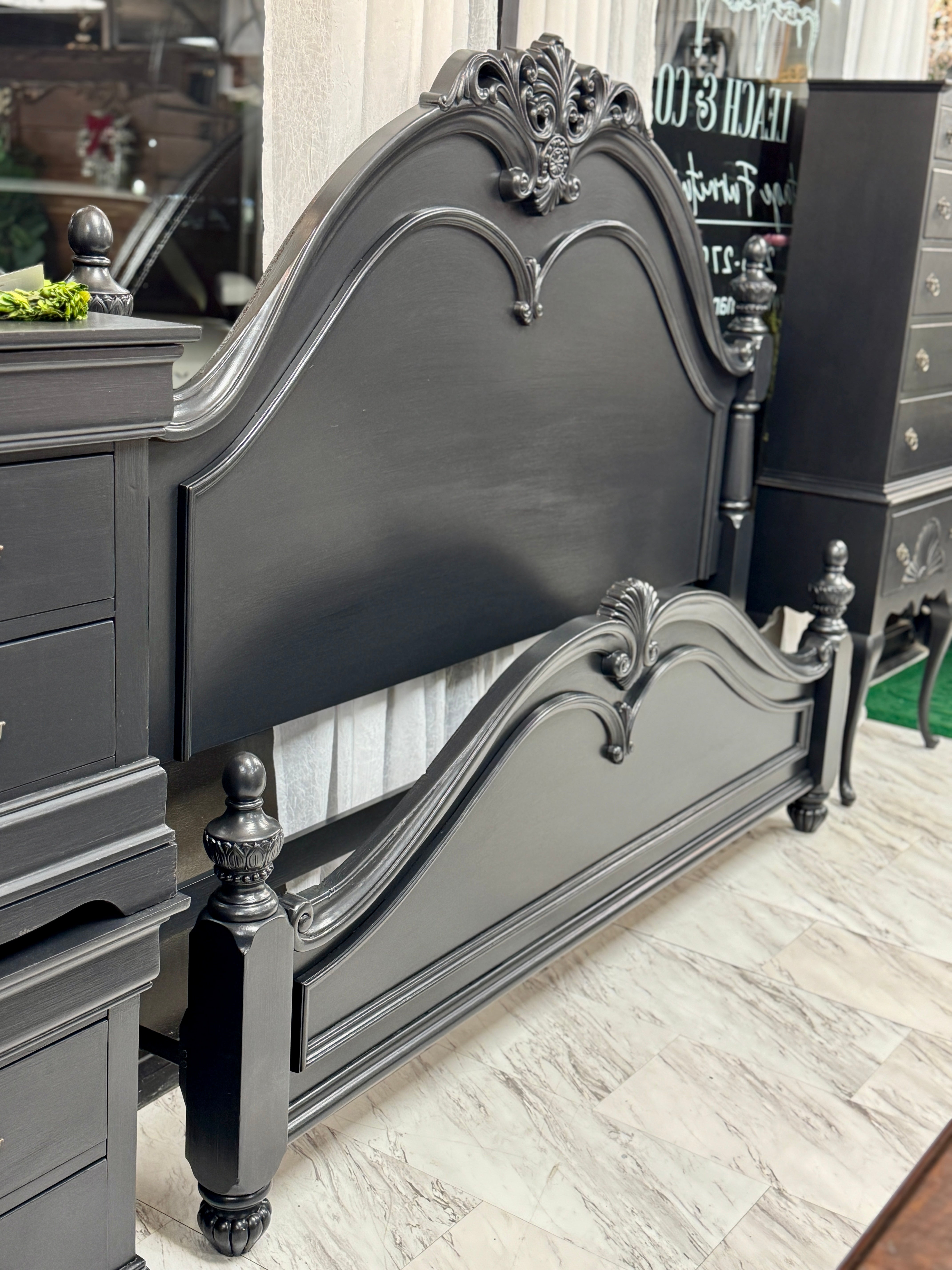 FB: 81 1/4” w x 30” h. Black. Wood rails included. Slats not included. Delivery available.
