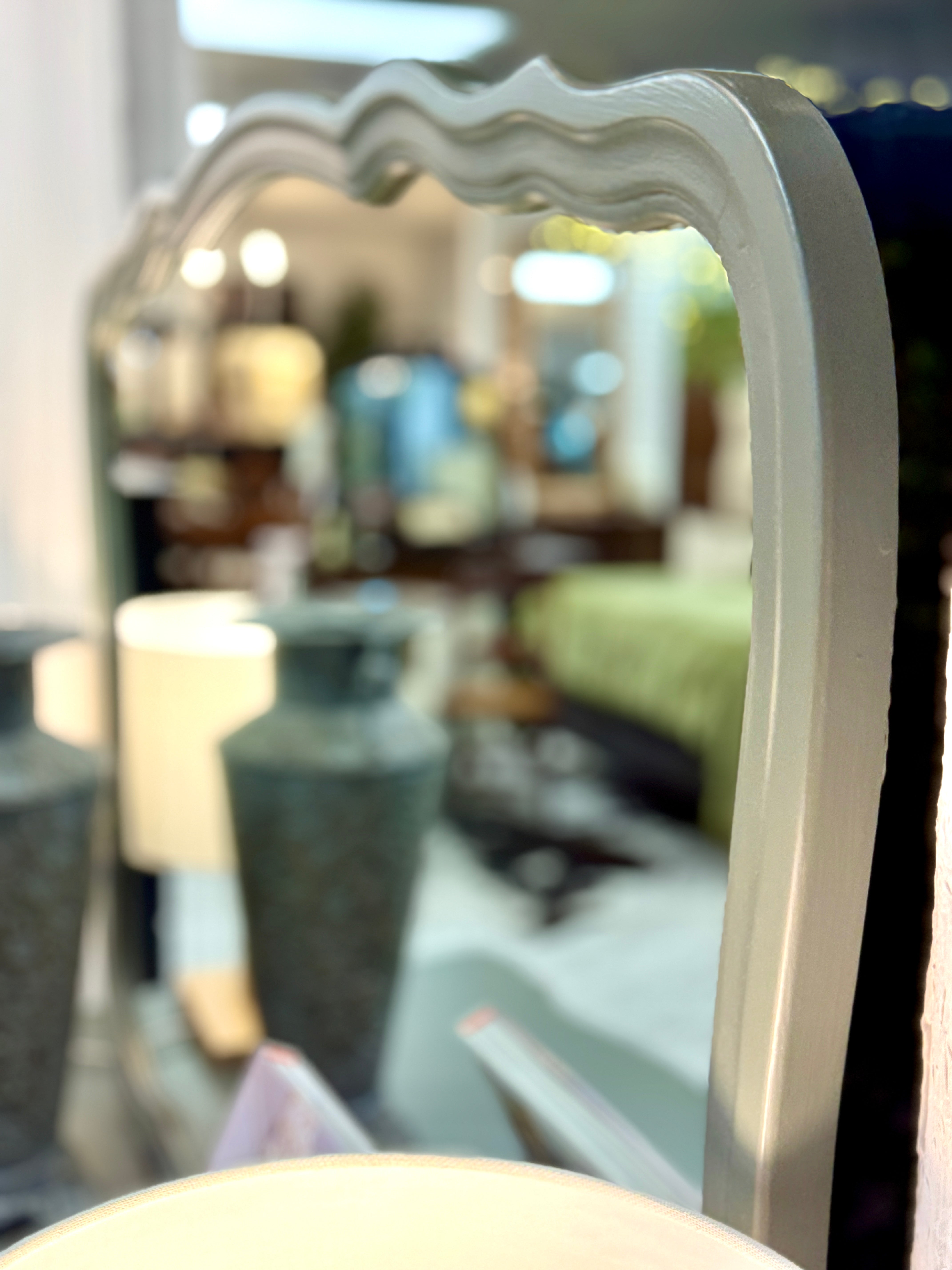 55 1/2w x 20d x 33 1/4h mirror - 42 3/4w x 30 1/2h. Bluish/green. Delivery available.