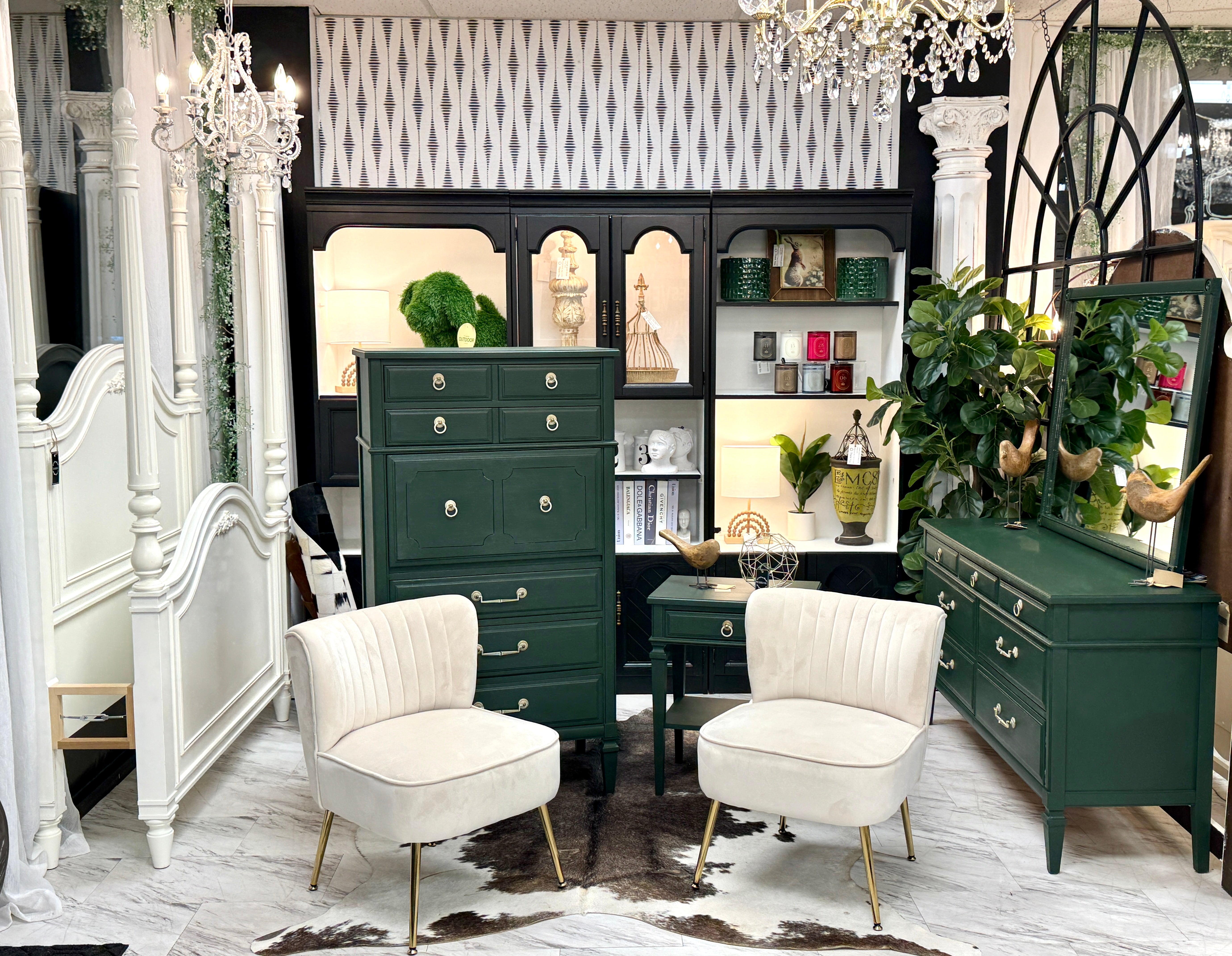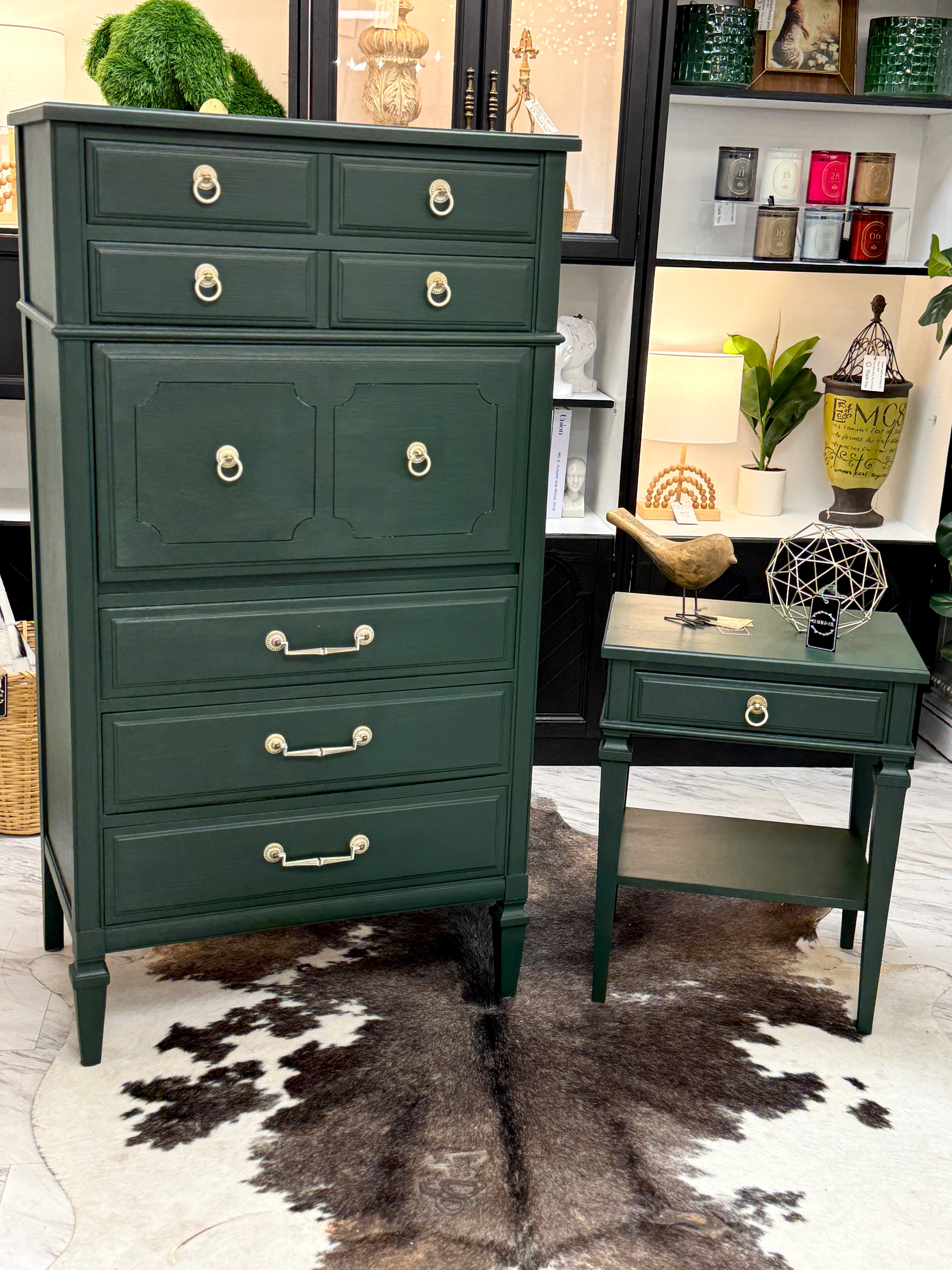 20 w x 14 3/4 d x 25 1/4 h. Green. Matching pieces available separately. Delivery available.