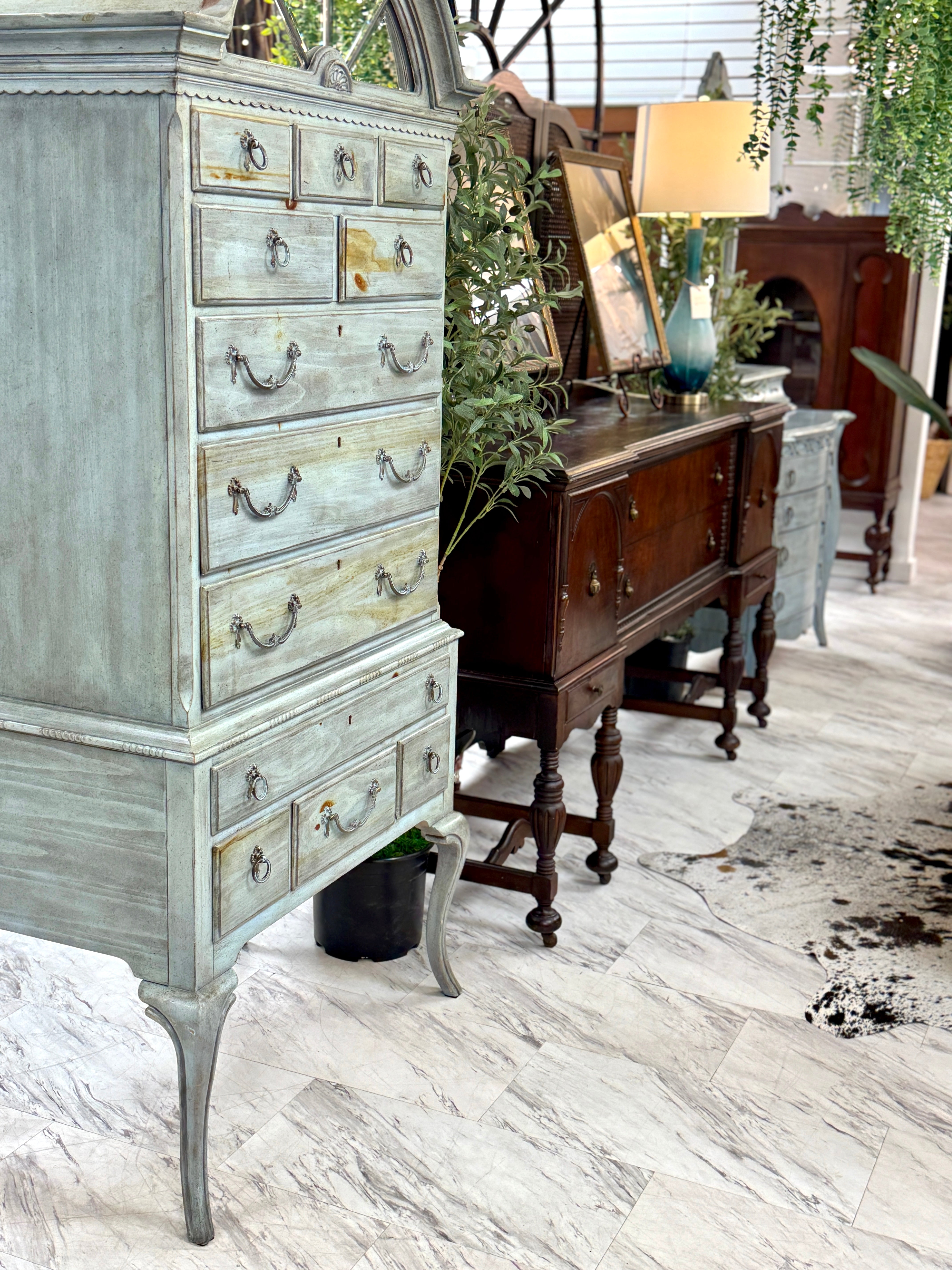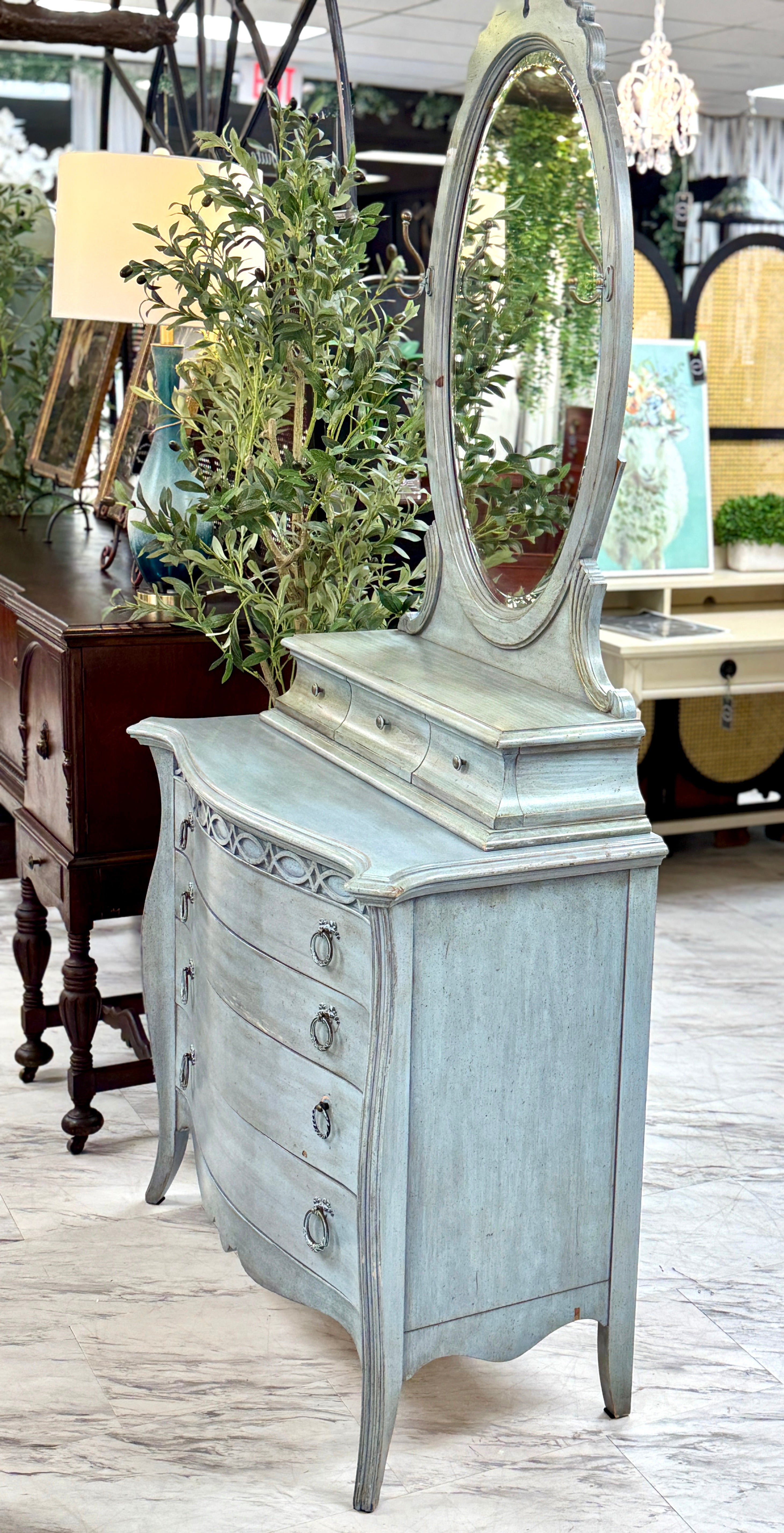 41w x 18 1/4d x 34 1/2h mirror - 46 1/4h. Blue. Delivery available. Matching highboy available separately.